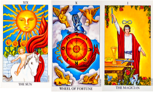 Sun (19), Wheel of Fortune (10) & Magician (1)