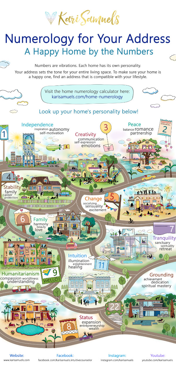 House numerology can affect your well-being. Since numbers are vibrations, your address sets the tone for your entire living space. Make sure that your house or apartment number is compatible with you and the others living there. Create an energy that is conducive to your lifestyle.